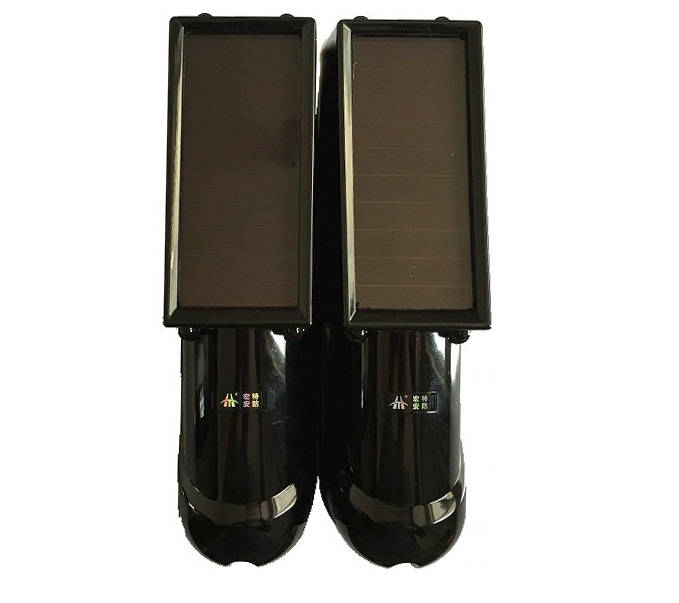 | ·HT-100SW双光束太阳能无线红外对射 | | 产品简介:智能型双光束传感器,其设计采用光电束侦测入侵,可满足最高标准的品质和可靠性。各双光束经过同步后可协同工作,在气候条件恶劣的情况下,也能保障警戒范围和稳定性。称之为“智能型”是因其具有不同的频率,可将堆栈式光束设置为“光束墙”。本设备带有可转动的光学系统便于安装 | | |